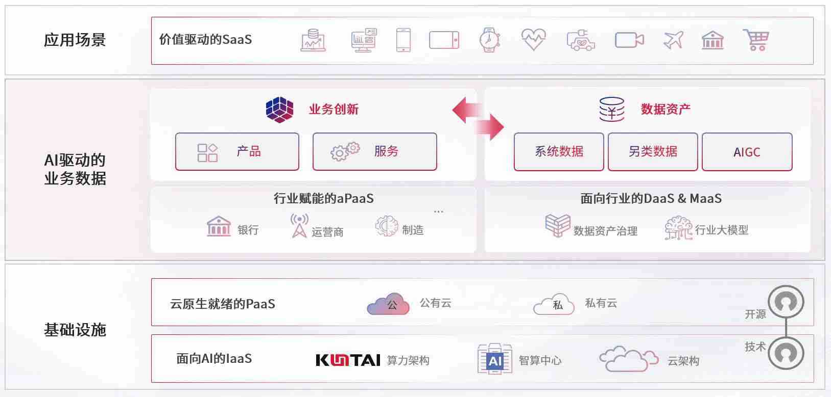 数字时代,,围绕企业数字化转型的关键要素,,Z6尊龙时凯数码开创性的提出数云融合战略和技术体系框架,,着力在云原生、、、、数字原生、、AI原生和信创产业上架构产品和服务能力,,,为处在不同数字化转型阶段的快消零售、、汽车、、、、金融、、、、医疗、、政企、、、教育、、运营商等行业客户提供泛在的敏捷IT能力和融合的数据驱动能力,,,构建跨界融合创新的数字业务场景和新业务模式,,,,助力企业级客户建立面向未来的核心能力和竞争优势,,,,全面推动社会的数字化、、、智能化转型升级。。